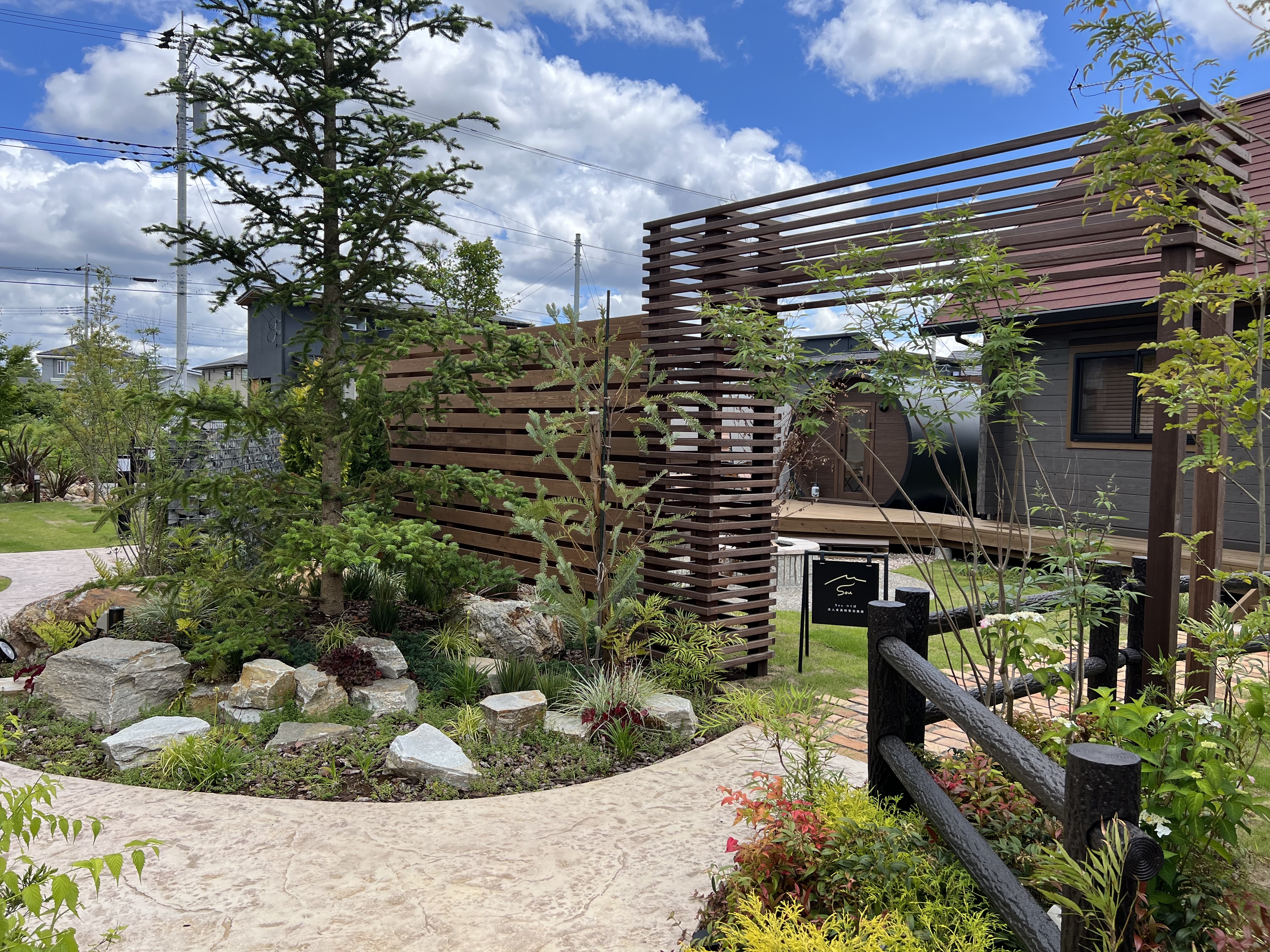 新興住宅地にある、非日常の空間を体験できる宿泊施設の外構になります。